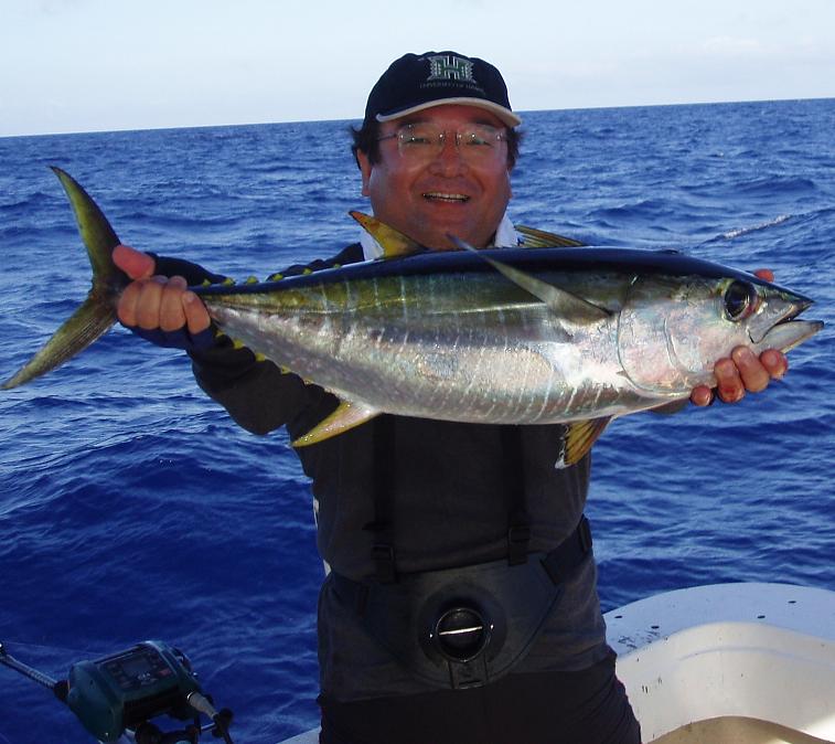 釣行データ∇天気風気温晴れ無風-℃潮汐にごり水温大潮普通-℃使用タックル(釣り道具)リール:ミヤマエ電動リールコマンド6 竿:遠里20〜60LB ルアー:ヤマシタ弓角9センチ釣魚:キハダマグロ110cm 12kg釣人:図面屋投稿:06年10月06日19:33場所:沖縄県 国頭郡本部町 本部沖7番パヤオ台風明けのパヤオフィッシングにて第一投目からいきなり90センチ10キロのキハダがヒットしました。この後も80〜110センチ、8〜12キロのキハダが10本連続ヒットしました。6人で100Lクーラー8個があっという間にいっぱいになりました。良0悪0