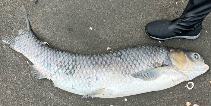 この大きすぎる怖い魚の名前分かりますか?カテゴリ:魚名を教えて砂浜に打ち上がってました。鯉のような鱗ですが海水魚っぽいです。千葉県の下の方です。鼻がえぐれてましたが食べられた感じはなく、こういう顔か奇形かって感じでした。mnmn21年10月10日(日)良0悪0