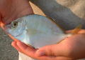 - 1.NAMIHEIアジ科の魚で、アジ科の中でも体高が最も高く、第2背ビレと尻ビレに幅広い黒褐色の縦帯が1本あるのが特徴。シマアジと間違えられやすいが、本種にはエラブタ後縁上部に黒色斑紋はない。また、幼魚時代には身体側に6本の暗褐色の横帯があるが、成長と共に消失する。全長15~25cmだが、まれに40cm以上の個体も釣れる。